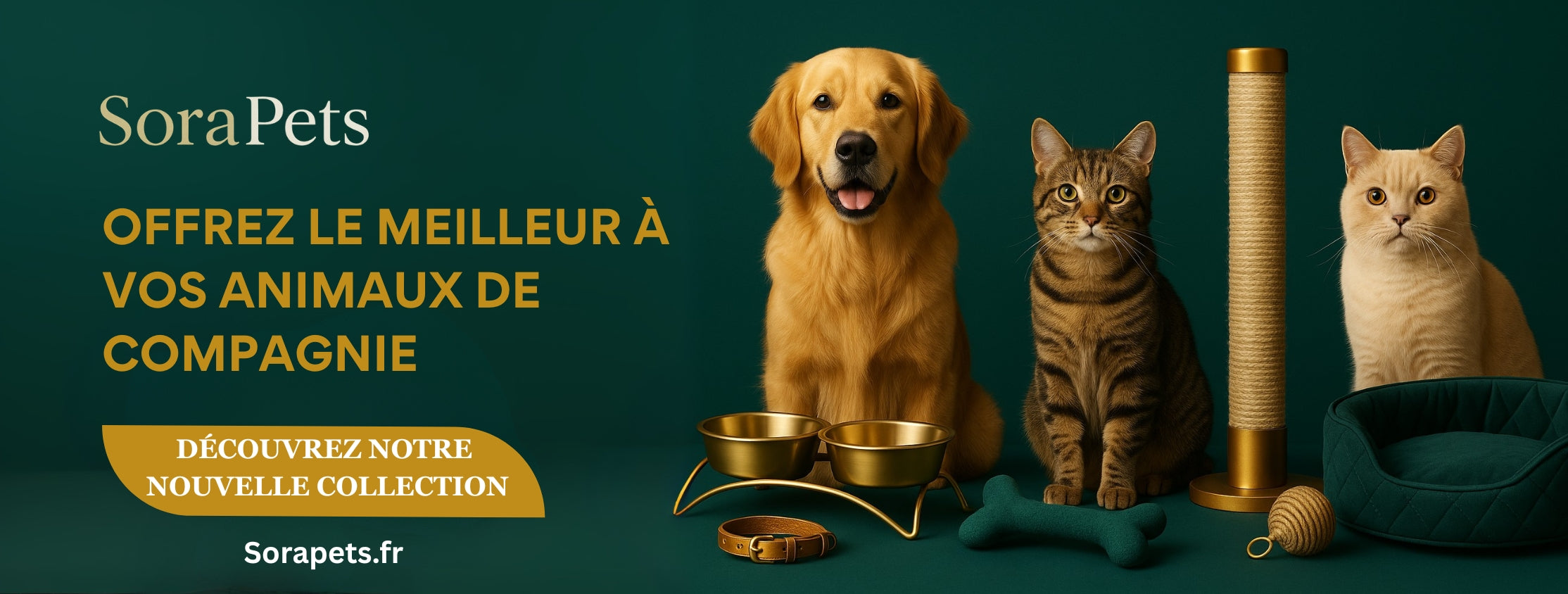 Chez SoraPets, nous proposons des essentiels élégants et de qualité, conçus pour offrir confort, bonheur et amour à vos animaux chaque jour.