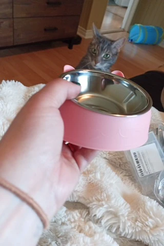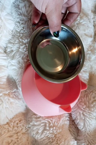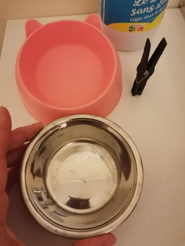 Ils sont super bons, très mignons, ils sont arrivés en ronds dans un morceau de papier séparé, la plaque en acier inoxydable peut être séparée de la partie rose, ce qui est un peu inconfortable, c'est que j'en utilise un pour l'eau et il est un peu incliné et ne se remplit pas beaucoup d'eau, mais j'ai mis quelque chose en dessous pour qu'il soit plus équilibré, pour le reste très bon et étiré pour mon chat aimé et là où